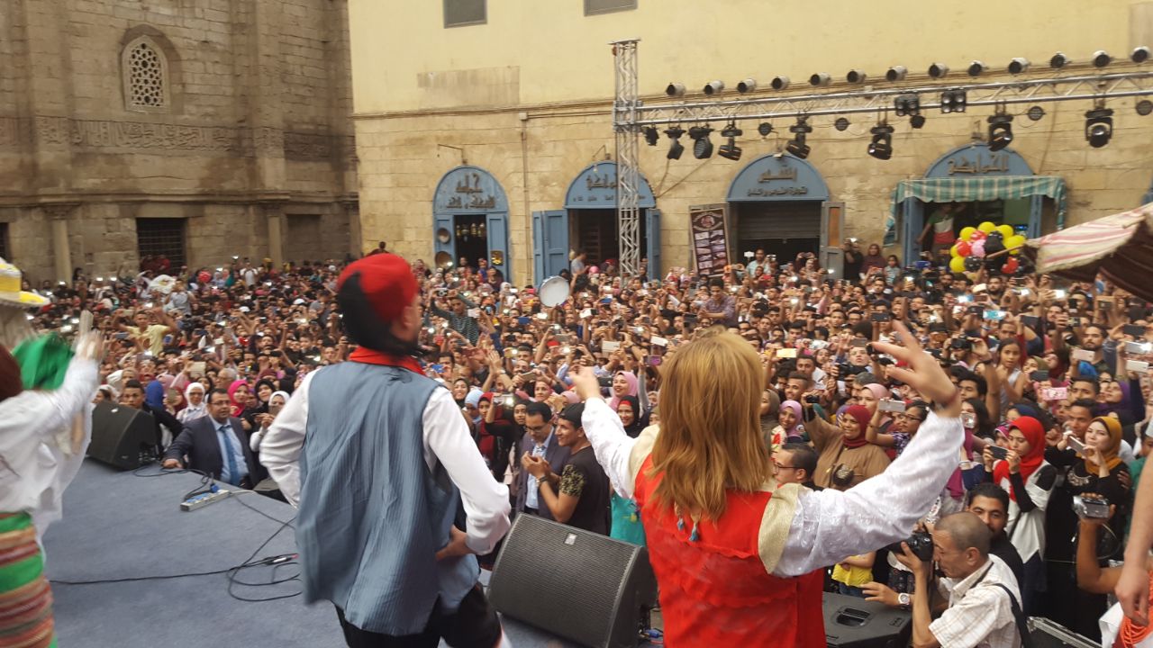 وقال عبد الفتاح أن موكب الاحتفال بدأت فى التحرك من بوابة الفتوح إلى مجموعة السلطان قلاوون وامتزجت موسيقات وإيقاعات الشعوب المختلفة تتقدمهم مصر بفرقها المتميزة، ومن الفرق المشاركة" الصين-تونس-تايلاند-السودان-بولاندا-سيريلانكا-الجزائر-باكستان-السعودية-بلغاريا-استونيا-جزر المالديف-اليونان-الهند-اندونسيا- نيجيريا- فلسطين ومن مصر جامعة سوهاج - وشباب سوهاج بوزارة الشباب والرياضة وفرقة حسب الله بملابسهم التقليدية التراثية" حتى توقفت الفرق عند المسرح المخصص للمهرجان وقدمت الفرق فقرات مختلفة متنوعة تُبرز التنوع الثقافى، وتفاعلت الجماهير الكبيرة مع الفرق المشاركة بالرقص والغناء فى مشهد مُبهر وبديع، وفي ختام الاحتفالية تفاعل الجمهور مع الفنان انتصار عبد الفتاح حيث طلب منهم ان يغنوا معًا وكانت أصوات الجماهير ممزوجة بأصوات الفرق وهزت أرجاء شارع المعز.