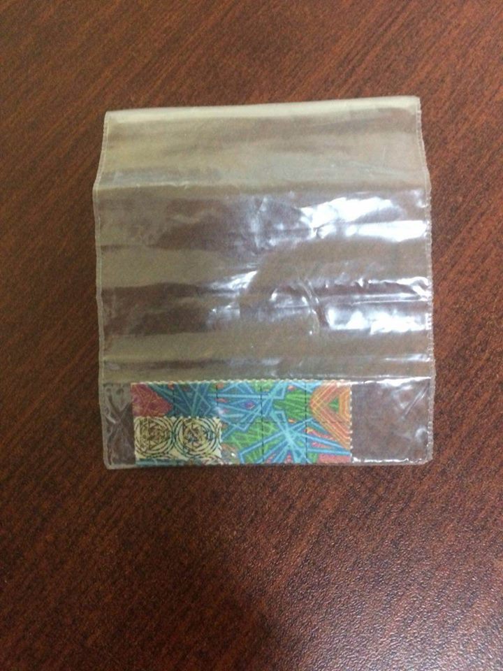 وبتفتيش حقيبة الراكب المتجه إلى نيويورك عثر داخل حافظة النقود على عدد ( 1 واحد) كارت يشبه الفيزا مزوّد بنصل معدنى، وبالفحص بمعرفة ضابط المفرقعات بالإدارة، أفاد بأن المضبوط عبارة عن كارت ذو نصل معدنى المشمول محظور حيازته طبقا للقانون.