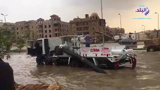 وأوضح أنه منذ اللحظات الأولى لهطول الأمطار تواجد رئيس جهاز المدينة، ومسئولو المرافق، بالمعدات، لمتابعة شفط المياه من الشوارع، ومنذ الأمس وحتى اليوم، لم يترك هؤلاء المسئولون مواقع العمل، وتمت الاستعانة بشفاطات من شركات مياه الشرب والصرف الصحى من المحافظات القريبة، حيث يعمل حاليا 10 شفاطات، بخلاف 10 شفاطات أخرى فى الطريق، والموقف الحالى هو رفع المياه من معظم المناطق المتجمعة بها، وجار استكمال العمل بباقى المناطق، مشيرا إلى أن هناك غرفة عمليات على أعلى مستوى، من مسئولى الرقابة الإدارية، وهيئة المجتمعات العمرانية الجديدة، وجهاز المدينة، تتابع أولا بأول جهود مواجهة هذه الظاهرة الجوية، وتقوم بالتنسيقات اللازمة.