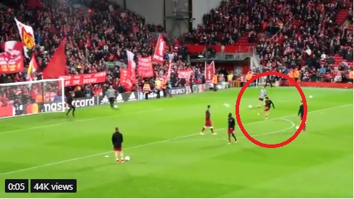نشر أحد المواقع الإنجليزية الخاصة بأخبار نادي ليفربول الإنجليزي، فيديو قام بتصويره من المدرجات أثناء عمليات الإحماء قبل انطلاق مباراة ليفربول مع روما في قبل نهائي دوري أبطال أوروبا.