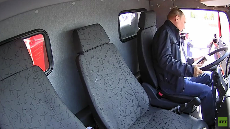وبعد أن قال "بوتين" كلمة شكر لرؤساء أطقم البناء المختلفة، قفز إلى الشاحنة البرتقالية الساطعة وقادها نحو الجسر الجديد.