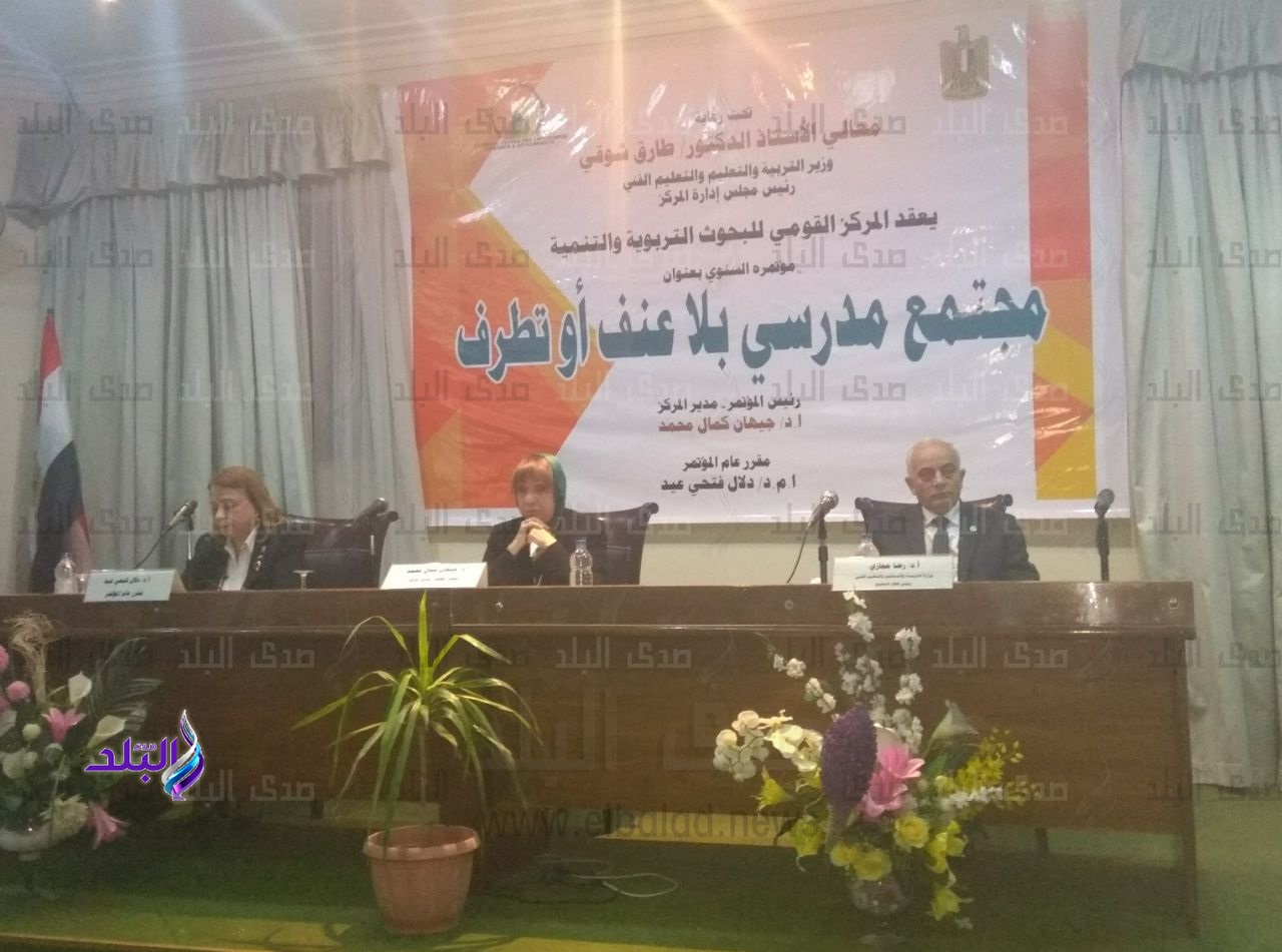 عقد المركز القومى للبحوث التربوية والتنمية، مؤتمره السنوى برئاسة الدكتورة جيهان كمال رئيس المؤتمر ومدير المركز، تحت عنوان (مجتمع مدرسى بلا عنف أو تطرف)، بدار الضيافة بجامعة عين شمس بحضور الدكتور رضا حجازى رئيس قطاع التعليم العام، ولفيف من عمداء وأساتذة الجامعات المصرية، والخبراء التربويين، وقيادات وزارة التربية والتعليم والتعليم الفني، وأعضاء الهيئات البحثية بالمراكز البحثية.