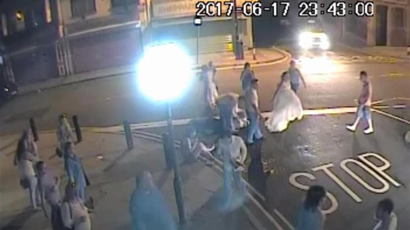نشرت صحيفة "مترو" البريطانية مقطع فيديو صادم، يظهر لحظة تحول حفل زفاف إلى شجار في أحد الشارع، لدرجة ان العروس كانت تحاول منع الضيوف من ضرب بعضهم البعض.