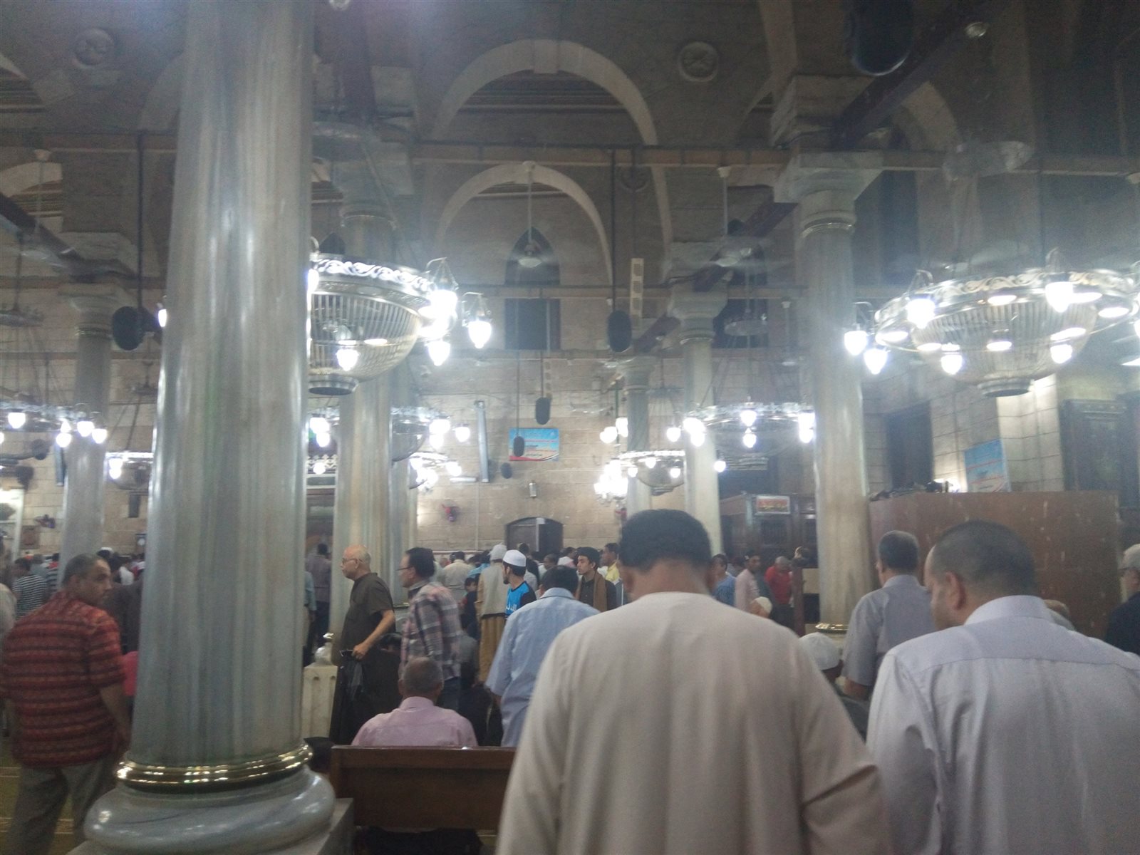 وتظهر روحانيات الشهر الكريم، داخل المسجد وخارجه، مع ترديد آيات القرآن الكريم، والأدعية أمام المسجد.