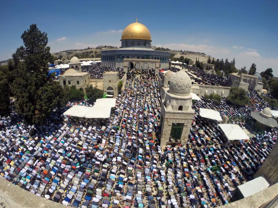 وأظهرت لقطات مصورة عشرات الآلاف من المصلين في ساحات المسجد الذي وصل إليه المصلون من كافة محافظات الضفة الغربية بعد تخفيف القيود المفروضة على دخولهم المدينة المقدسة.