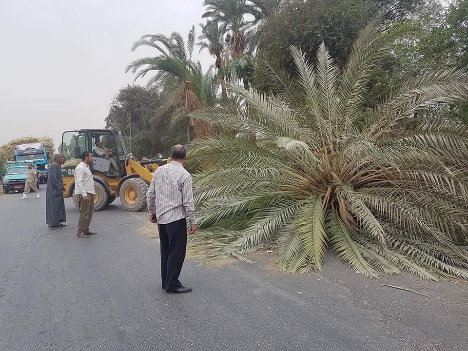 رفع 6 أشجار نخيل سقطت بسبب الرياح بقرية الكولا بسوهاج