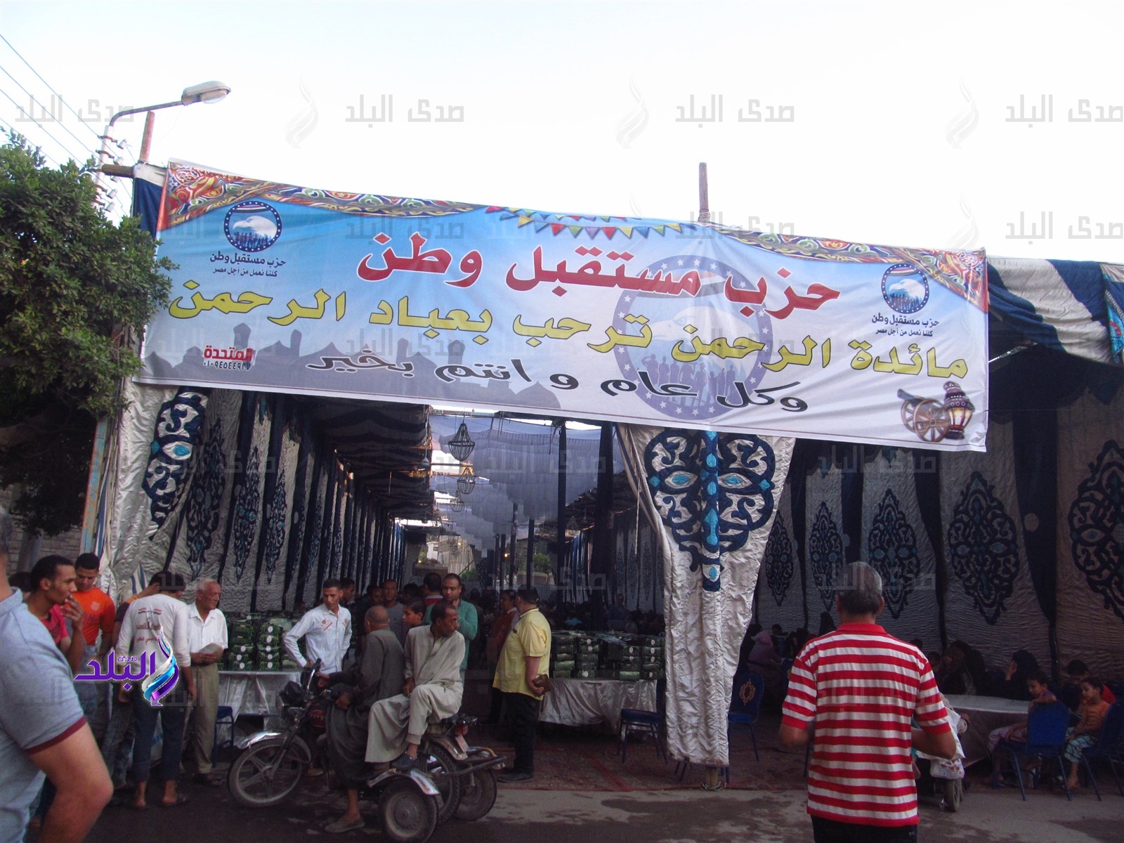 نظم حزب مستقبل وطن بمحافظة الفيوم، مائدة لإفطار 500 صائم يوميا من الفقراء وعابرى السبيل، وذلك فى السرادق المقام بجوار مديرية الرى ، تحت رعاية النائب عماد سعد حموده الامين العام المساعد لحزب مستقبل وطن بالامانة العامة ومشرف الحزب بمحافظات شمال الصعيد والمهندس عبد القادر الجارحى الامين العام لحزب مستقبل وطن بمحافظة الفيوم .