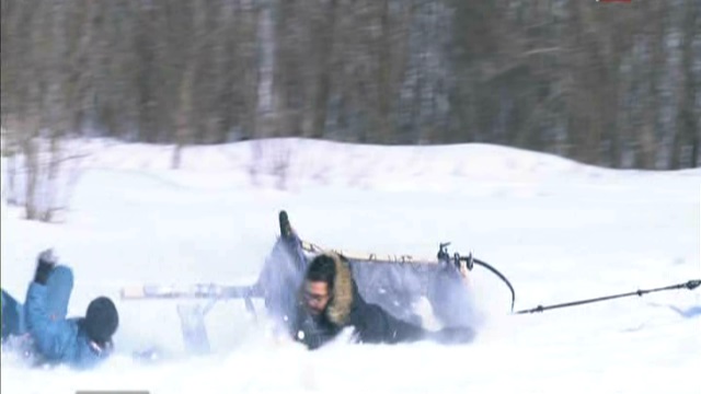وسقط السعيد من "زلاجة الجليد" التي تجرها الكلاب، مما دفع الفنان رامز جلال للسخرية منه قائلا : "عبدالله مش قاعد في زلاجة دا قاعد في حمام بلدي.. الواد عبدالله وقع تحس انه اتقلب من عربية طماطم".