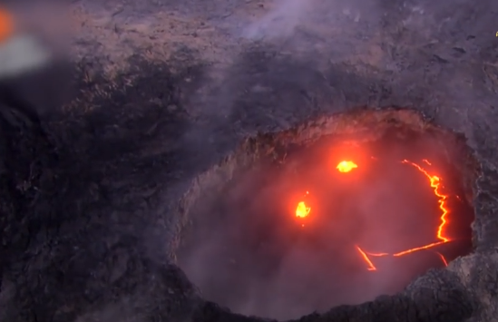أظهر مقطع فيديو، تدفق حمم بركانية نتيجة ثوران بركان كيلاويا في جزيرة هاواي، والذي وصل إلى المنازل ودمر المئات منها، ودخل إلى مياه المحيط.