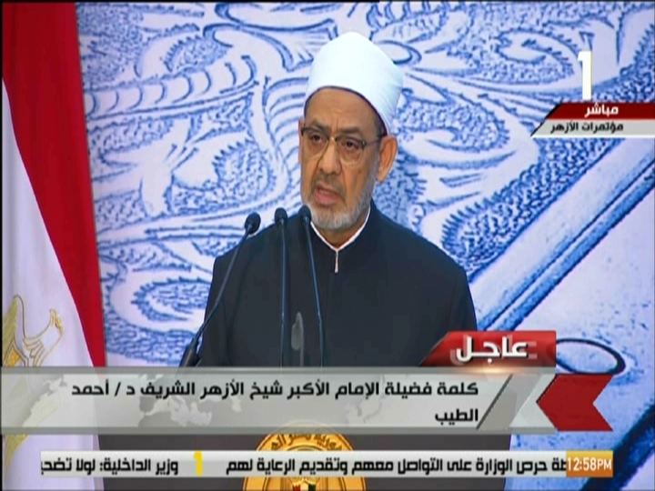 وشدد "الطيب" خلال كلمته بالاحتفال بليلة القدر بحضور الرئيس السيسي، اليوم الاثنين، أنه لا يمكن التغاضي عن عبارة وردت بالبيان تطالب السلطات الإسلامية بالإعلان بأن بعض آيات القرآن الكريم تطالب بقتل اليهود والنصاري.