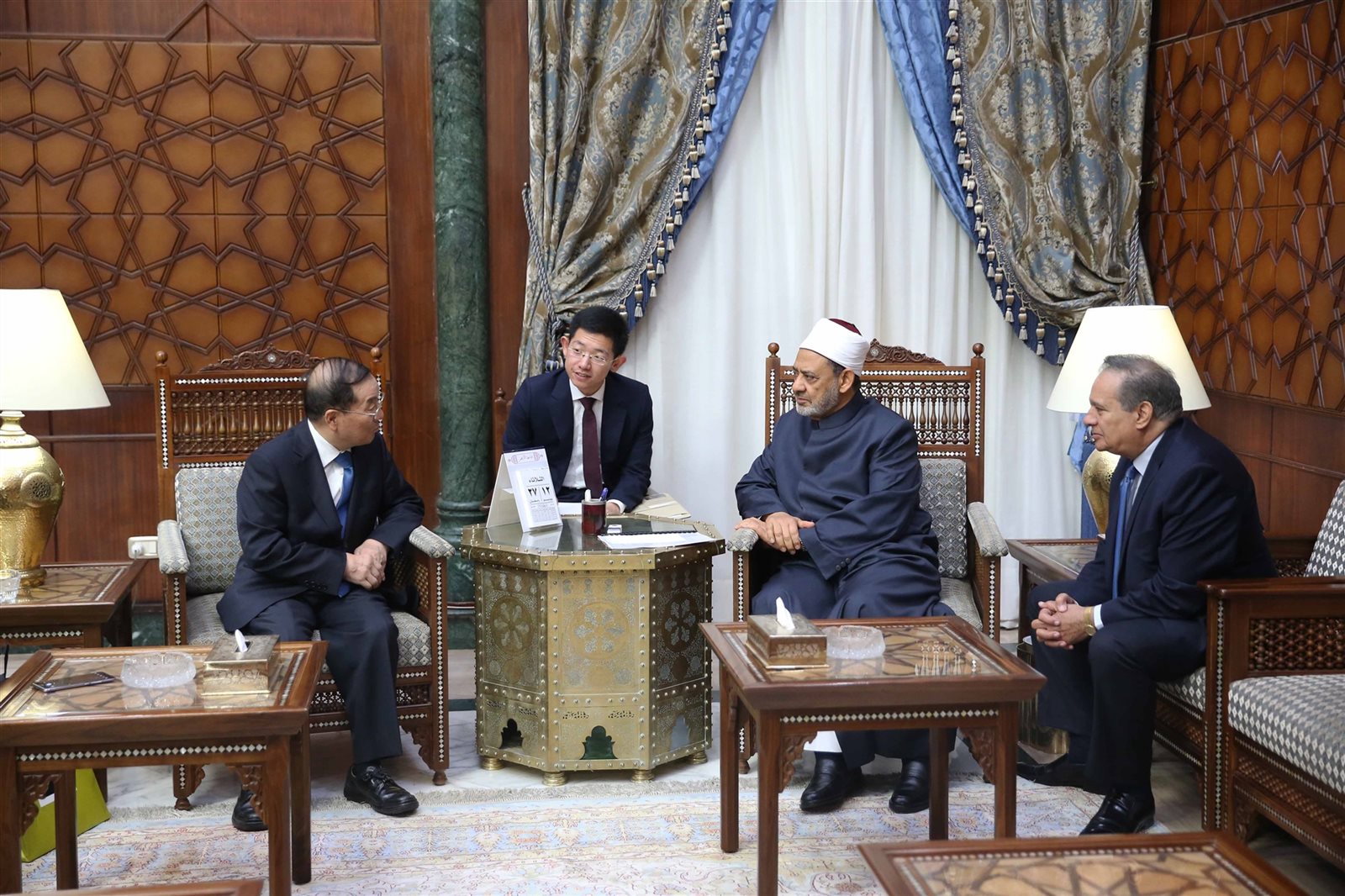 استقبل الدكتور أحمد الطيب، شيخ الأزهر الشريف، سونغ آي قوه، السفير الصيني بالقاهرة.