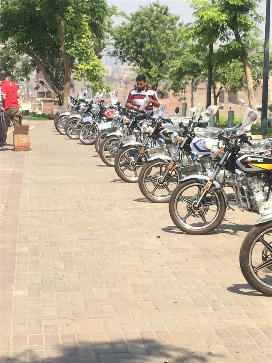 سلم المهندس عاطف عبد الحميد، محافظ القاهرة، منذ قليل، 24 دراجة بخارية "موتوسيكل" لذوى الاحتياجات الخاصة والإعاقة وذلك خلال احتفالية بحديقة الازهر.