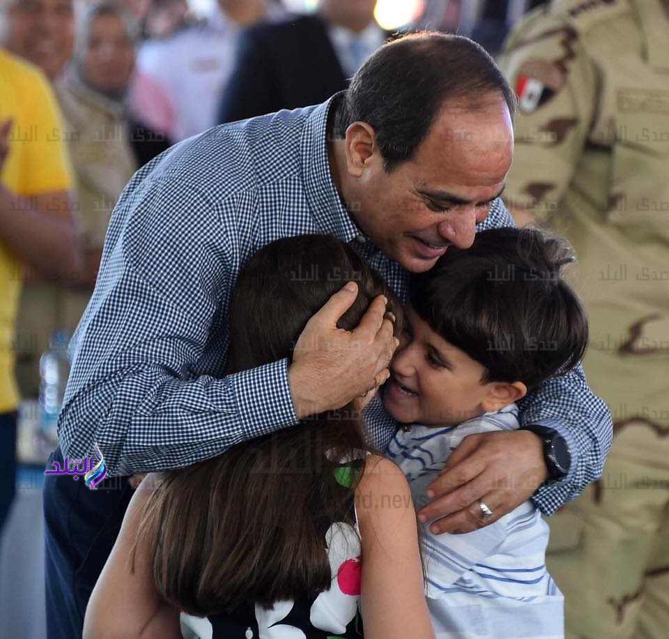 أحد أطفال الشهداء يرتمى فى أحضان الرئيس السيسى .. فيديو