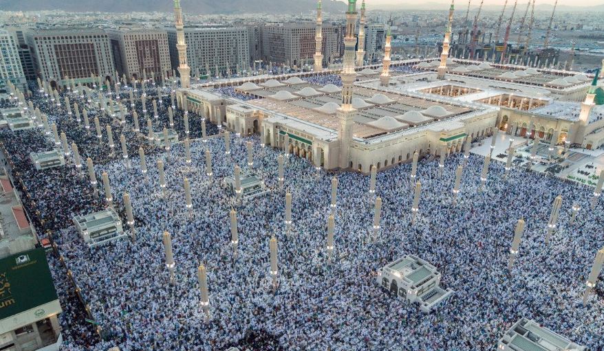 شاهد.. ساحات المسجد النبوي تكتظ بالمصلين في صلاة عيد الفطر