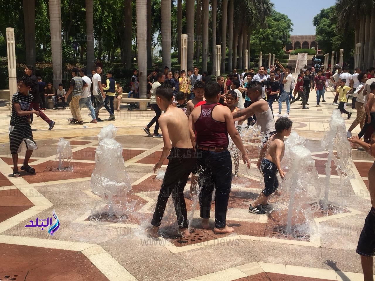 تحولت نافورة حديقة الأزهر لحمام سباحة للأطفال، بعد أن تجمع الأطفال حولها منذ الساعات الأولى من صباح اليوم، وقاموا بالغطس بملابسهم فى محيطها، وسط حالة من التشجيع والتصفيق من أقاربهم وأصدقائهم.
