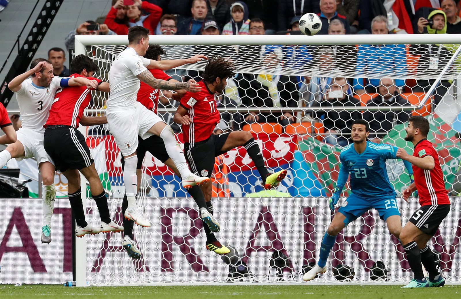 وتصدى محمد الشناوى حارس الفراعنة لتسديدة صاروخية من ادينسون كافاني ليمنع هدفا محقق لصالح أوروجواي فى الدقيقة 83 واحتسب حكم اللقاء ضربة حرة لصالح كافانى عقب عرقلته من قبل احمد فتحى امام منطقة الجزاء بالدقيقة 87 سددها نفس اللاعب تصطدم بالعارضة وتمنع هدف محقق.