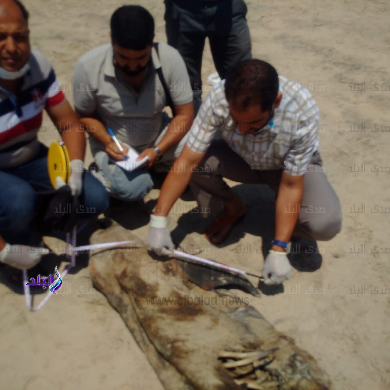 وأوضحت اللجنة المشكلة أن الحيوان النافق هو دولفين فى حالة تحلل كامل حيث تم أخذ المقاسات المطلوبة وقررت اللجنة تسليم الدولفين لمركز الحفريات بكلية العلوم جامعة المنصورة للاستفادة منه فى أغراض البحث العلمي.