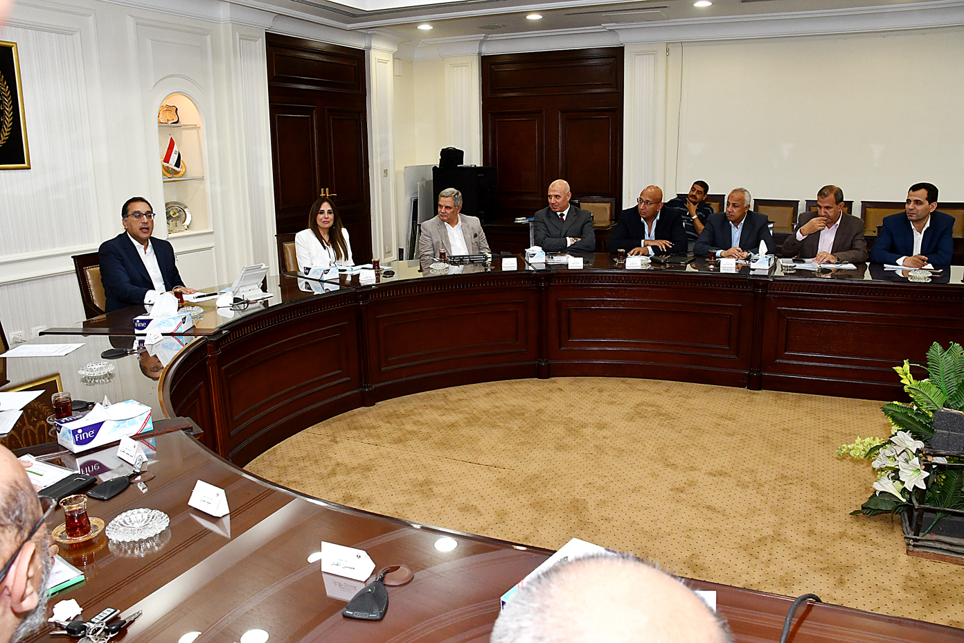 عقد الدكتور مصطفى مدبولي، رئيس مجلس الوزراء، وزير الإسكان والمرافق والمجتمعات العمرانية، اجتماعًا لمتابعة تنفيذ مشروعات المرافق، والطرق، والبنية الأساسية، التى تتولى تنفيذها وزارة الإسكان، وذلك بحضور المهندسة راندة المنشاوى، نائب وزير الإسكان لشئون المتابعة والمرافق، ومسئولى قطاع المرافق بالوزارة.