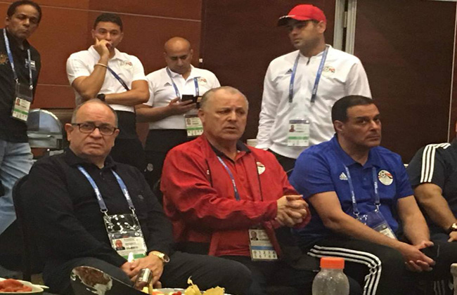 هاني ابوريدة يجتمع مع لاعبي منتخب مصر قبل مواجهة السعودية