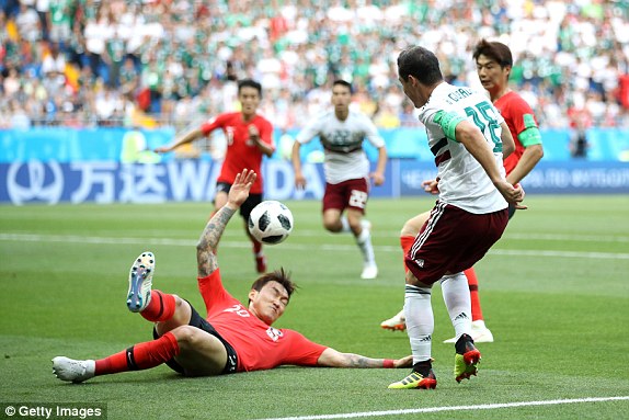 وجاء هدف المكسيك فى الدقيقة 26 عن طريق البيرتو فيلا من ركله جزاء .ويتصدر المجموعة السادسة السويد والمكسيك بثلاث نقاط بينما جاءت كوريا الجنوبية وألمانيا في المركز الثالث والرابع دون نقاط .