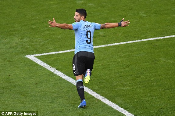 حقق منتخب أوروجواي التقدم على نظيره الروسي بهدفين دون رد في الشوط الأول بالمباراة التي تجمع المنتخبين حاليا فى الجولة الثالثة ضمن منافسات المجموعة الأولى بكأس العالم.