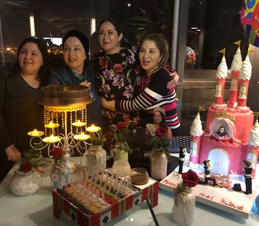 وظهرت مي في الصور مع والدتها النجمة بوسي وشقيقتها وخالتها نورا، حيث تفاعل الجمهور مع الصور معجبين بحالة الحب التي تجمع بينهم.