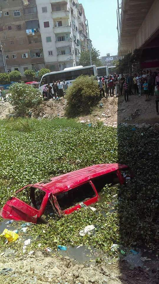 بانتقال قيادات المديرية، ومأمور وضباط القسم، وضباط إدارة المرور، وقوات من ادارة الحماية المدنية، (وحدة الإنقاذ النهري)، تبين أنه أثناء سير سيارة (ميكروباص- بدون لوحات معدنية)، يستقلها ١٤ شخصا قيادة "م ع ا ع، 41 عام، سائق، مقيم شارع محطة السوق، دائرة القسم، أعلي الكوبري المشار إليه، اختلت عجلة القيادة بيده، مما أدي لانحرافها واصطدامها بسور الكوبري وسقوطها بمياه الترعة.