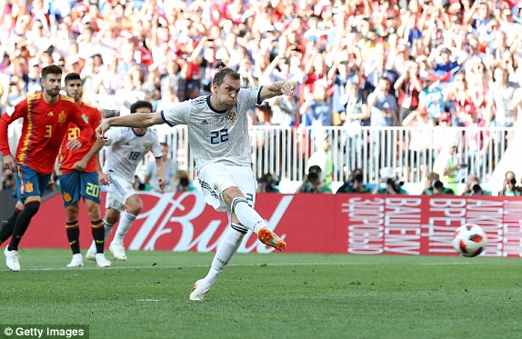حقق المنتخب الروسي مفاجأة مدوية، بإقصاء منتخب إسبانيا من دور ثمن النهائي بكأس العالم، بعد الفوز بضربات الترجيح بنتيجة 4-3، بعد انتهاء الوقت الأصلي بنتيجة 1-1.