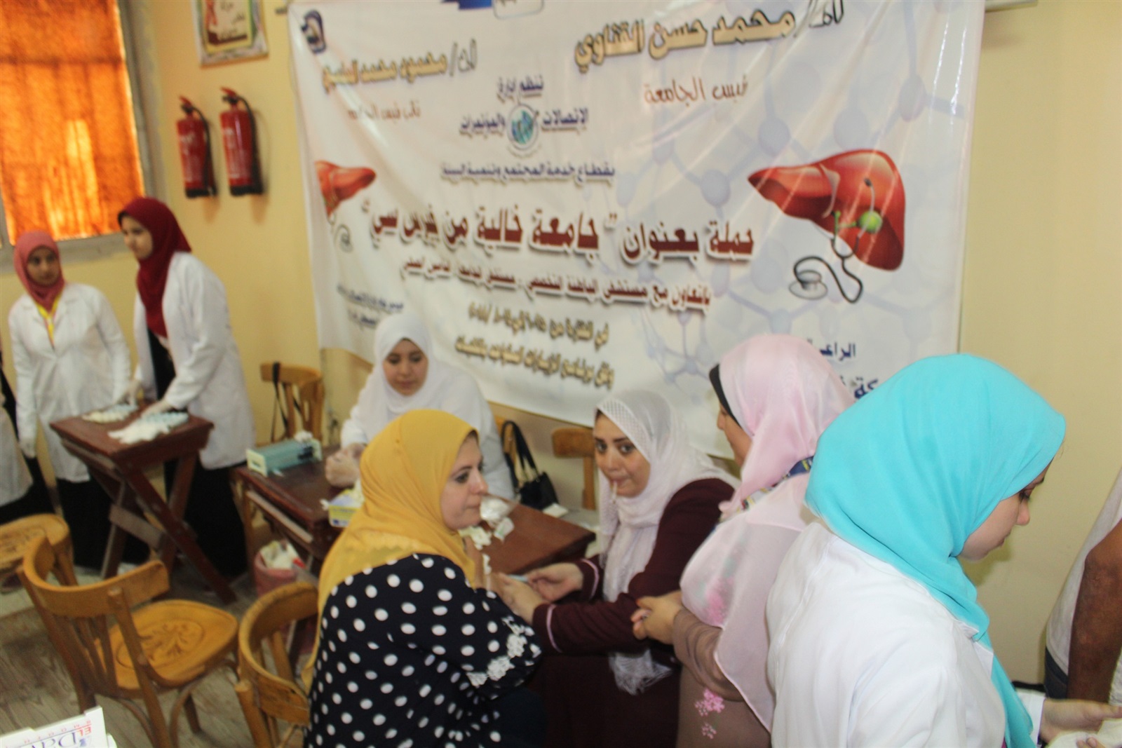 تواصلت بكلية التجارة جامعة المنصورة ولليوم الرابع فعاليات حملة جامعة خالية من فيروس سى التى تقام تحت رعاية كل من الدكتور محمد حسن القناوى رئيس جامعة المنصورة و الدكتور محمود المليجى نائب رئيس الجامعة لشئون خدمة المجتمع وتنمية البيئة خلال الفترة من ٢٥ يونيو ٢٠١٨ الى ١٤ اغسطس ٢٠١٨.
