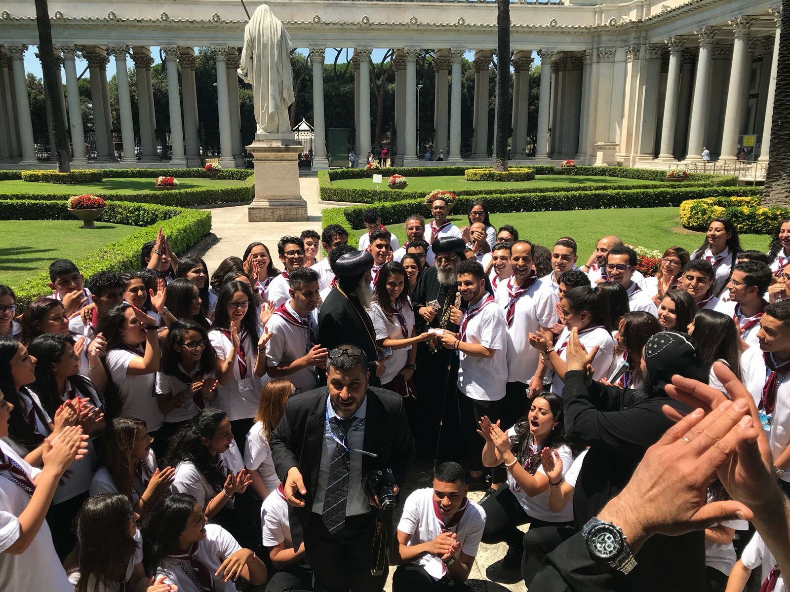 بارك البابا تواضروس الثاني، بابا الإسكندرية وبطريرك الكرازة المرقسية، في خطوبة اثنين من فريق الكشافة التابع لإيبارشية تورينو وروما (دانييل وكاتي) أثناء حضوره يوم الصلاة من أجل الشرق الأوسط بإيطاليا.