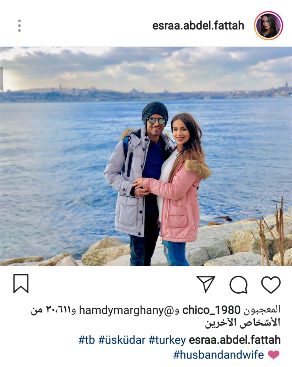 نشرت الفنانة إسراء عبد الفتاح، نجمة مسرح مصر، صورة جديدة، عبر حسابها على موقع الصور والفيديوهات الشهير "إنستجرام" مع زوجها النجم حمدي الميرغني.