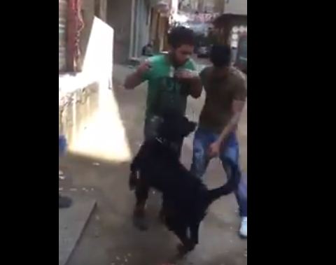 بلطجي يستغل كلب شرس لتمزيق جسد شاب.. فيديو