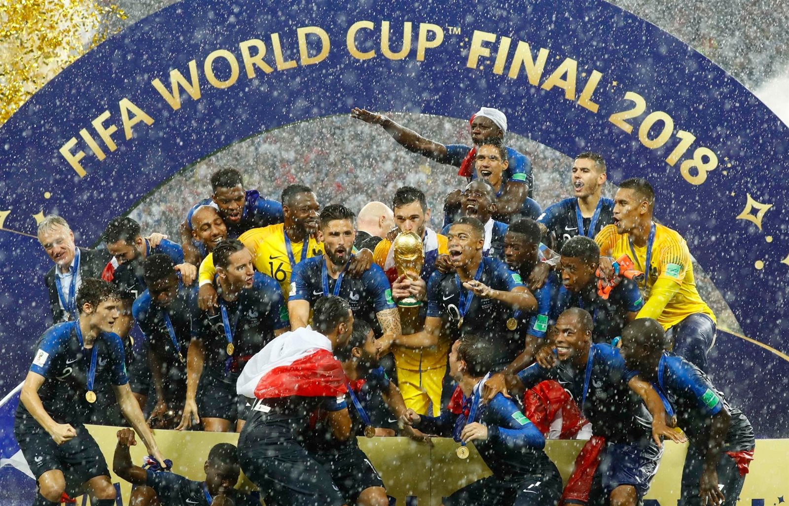 جوقة الشرف في انتظار منتخب فرنسا بعد الفوز بكأس العالم