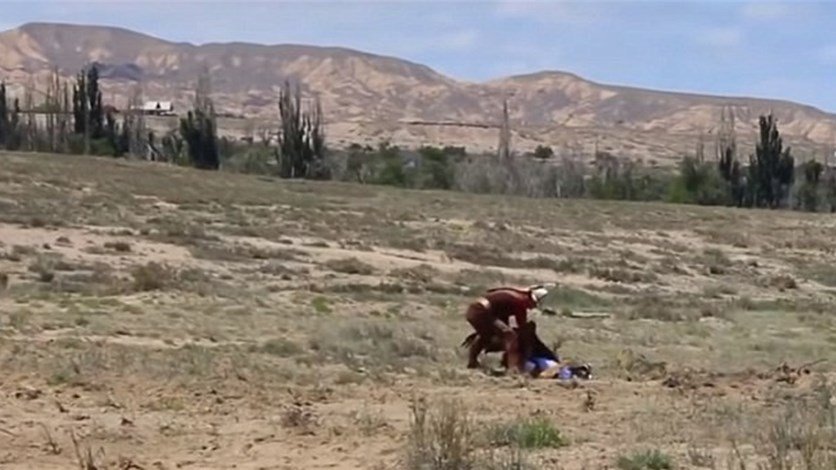 هاجم الصقر الطفلة بسرعة كبيرة ، بينما كان المتفرجون يراقبون الحادثة في مهرجان بمنطقة "إيسيك كول" في "قيرجيزستان" بآسيا الوسطى.