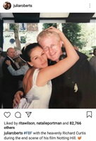 نشرت النجمة العالمية "جوليا روبرتس" صورة على حسابها الشخصى على موقع الصور والفيديوهات "إنستجرام" من كواليس فيلمها "Notting Hill" مع كاتب الفيلم ريتشارد كيرتس حيث قالت "مع الرائع ريتشارد كيرتس أثناء تصوير أخر مشهد من الفيلم.