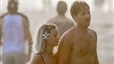 شاهد.. مارجو روبى مع زوجها على الشاطئ