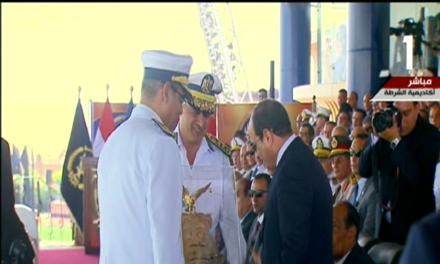 وقد توسط الرئيس عبد الفتاح السيسي مجموعة كبيرة من المسئولين وكبار رجال الدولة خلال حفل تخريج دفعة جديدة من طلاب كلية الشرطة بأكاديمية الشرطة بالقاهرة الجديدة.