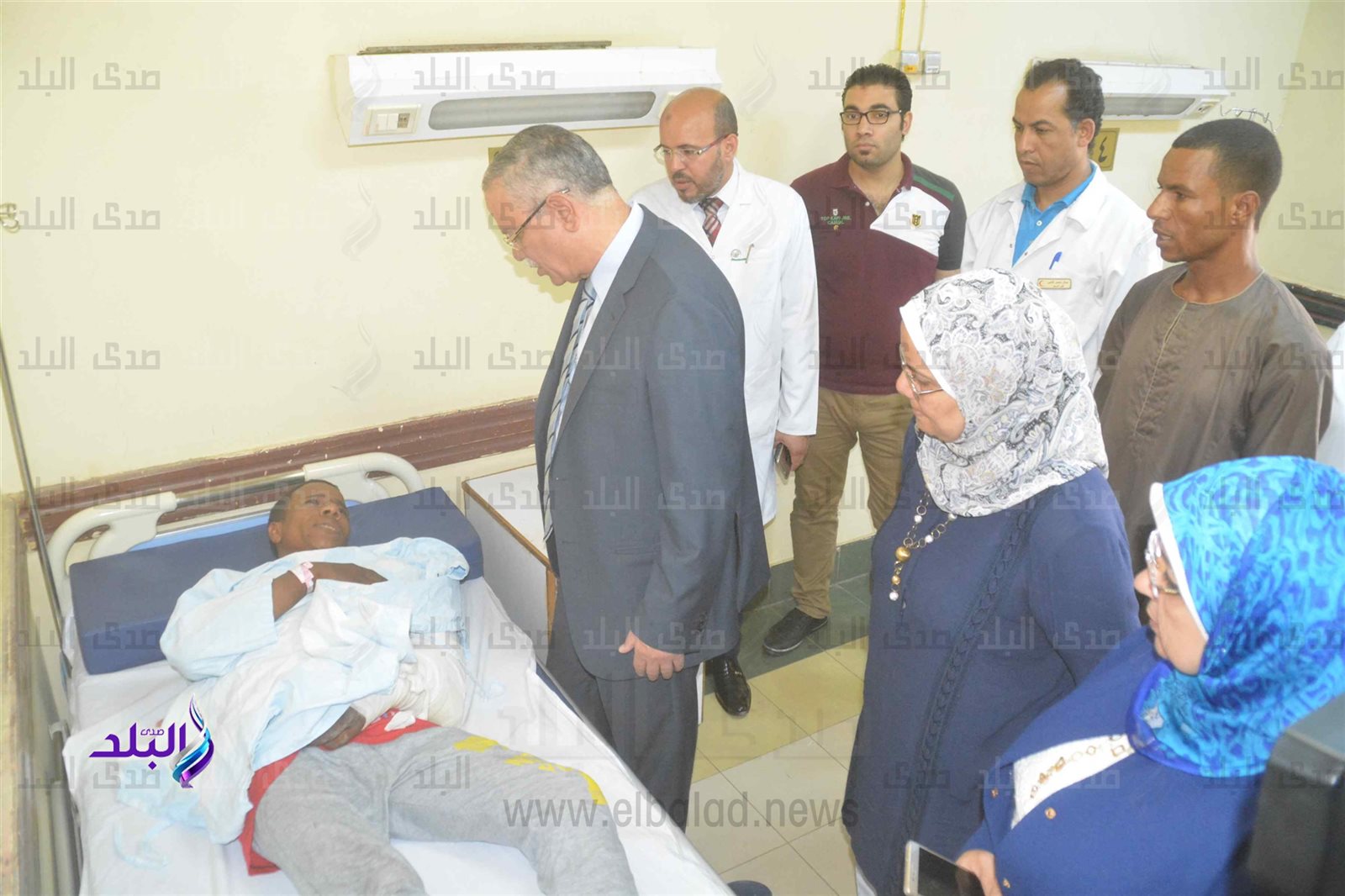 محافظ المنيا يزور مصابي حادث الشرفا بمستشفى التأمين الصحي