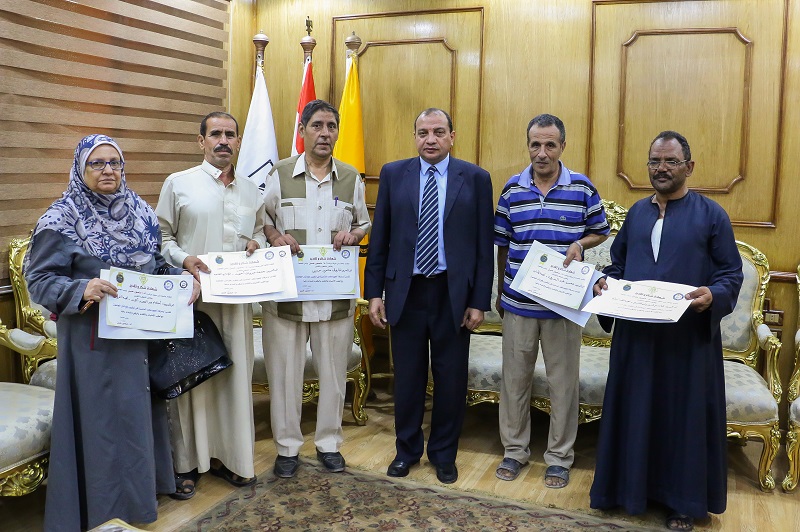 جامعة بنى سويف تكرم 9 من الموظفين المحالين للمعاش
