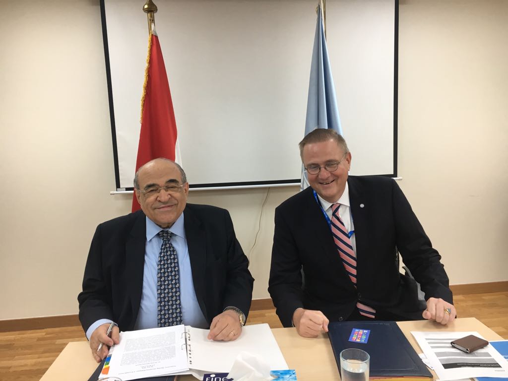 وقع الدكتور مصطفي الفقي مدير مكتبة الإسكندرية وريتشارد ديكتس مدير المكتب التنسيقي للأمم المتحدة بالقاهرة مذكرة تفاهم في حضور نخبة من الشخصيات المصرية المتميزة من المفكرين والأكاديميين والدبلوماسيين والمجتمع المدني والمرأة والشباب.