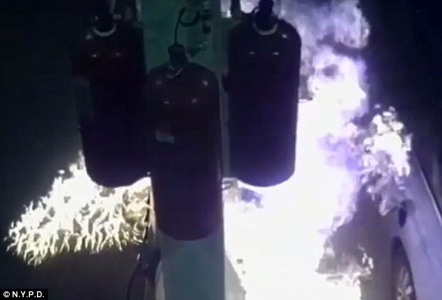 تطارد شرطة نيويورك أمريكي متهور لتوقيع عقوبة فورية عليه، بعد تعمده إشعال النار وتفجير محطة بنزين بمدينة نيويورك بدون سبب معلوم.