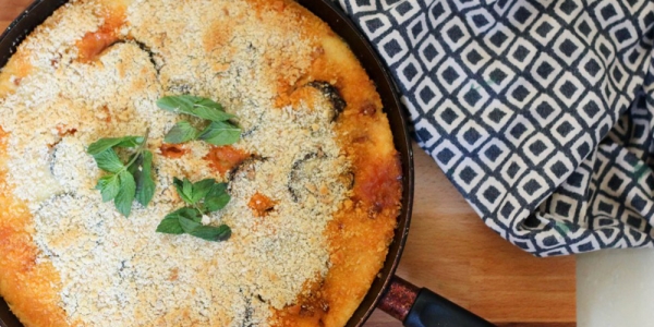 * يوضع جزء من خليط اللحمة في طاجن ثم تضاف حلقات الباذنجان وباقي خليط اللحمة