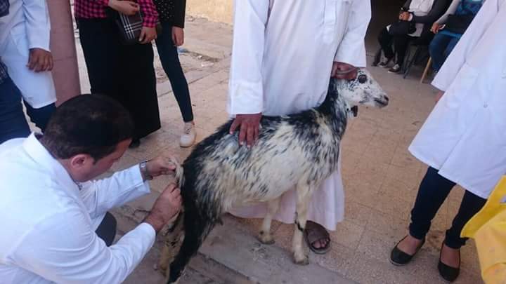 رافق القافلة طلبة وطالبات كلية الطب البيطري بفوكة، حيث توجهت صباح اليوم إلى منطقة القصر للكشف على الحيوانات بالمجان.