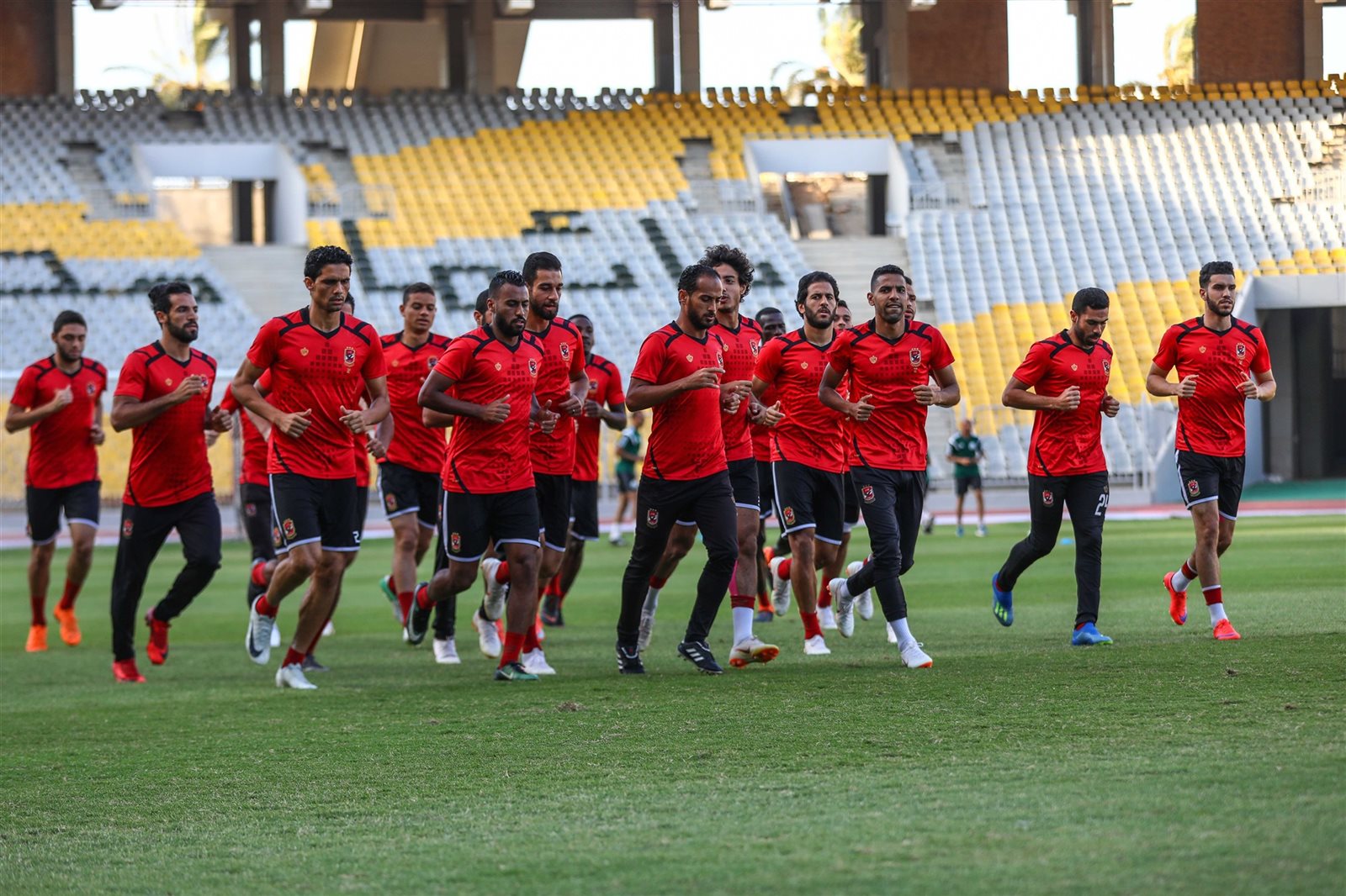 عقد الفرنسي باتريس كارتيرون، المدير الفني للفريق الأول لكرة القدم بالنادي الأهلي، محاضرة مع لاعبيه قبل بدء المران مساء اليوم، الإثنين، باستاد الجيش المصري ببرج العرب.