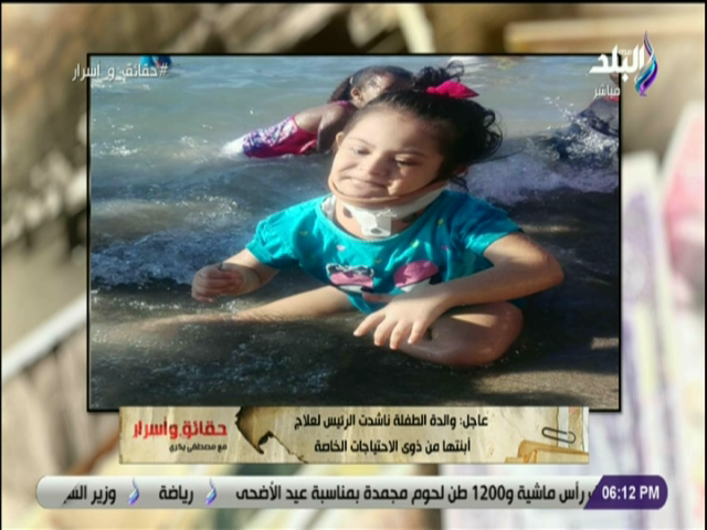 وأضاف بكري خلال تقديمه برنامجه "حقائق وأسرار" المذاع على قناة "صدى البلد"، أن الطفلة من ذوى الاحتياجات الخاصة والاسرة ناشدت الرئيسلأنها لا تقدر على علاجها وبالفعل استجاب لها.