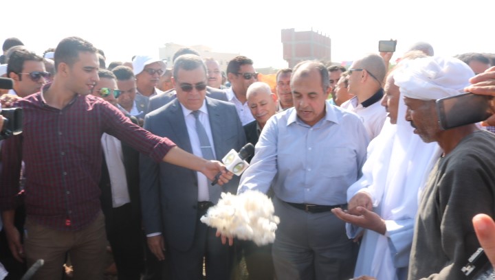 كما عقد وزير الزراعة مؤتمرا صحفيًا أكد خلاله اهتمام مصر بالمحاصيل الاستراتيجية ومنها القطن، ما يعود بالنفع على الفلاح ويرفع مستوى معيشته اقتصاديًا، مشيرا إلى أن الهدف من زيارة الفيوم مشاركة الفلاحين فرحتهم وتذليل جميع العقبات التي تواجههم عند تسويق محصول القطن، لافتًا إلى أن السعر الاسترشادي لقنطار القطن هذا العام بلغ نحو ألفين وخمسمائة جنيه، بالإضافة إلى 100 جنيه توريد تبكير حتى 15 أكتوبر المقبل، كحد أدنى لشراء القطن من المزارعين.
