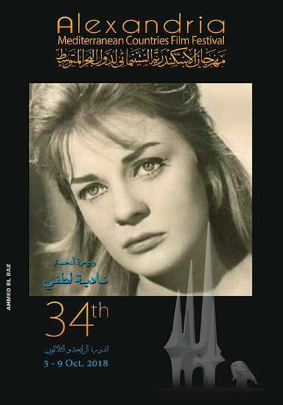 كشف مهرجان الإسكندرية السينمائي لدول البحر المتوسط، الذى تنظمه جمعية كتاب ونقاد السينما برئاسة الناقد السينمائي الأمير أباظة وتحت رعاية الدكتورة إيناسعبد الدايم وزيرة الثقافة، عن أفيش دورته الـ34 والتى تقام فى الفترة من 3 إلى 9 أكتوبر المقبل وتتصدّره صورة الفنانة الكبيرة نادية لطفى التى تحمل اسمها الدورة الـ 34.