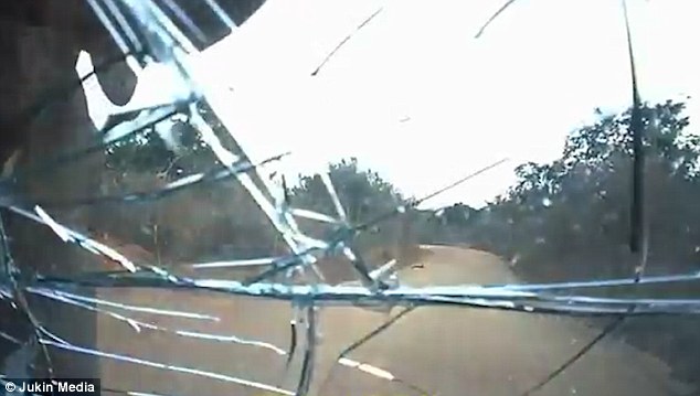 وتسبب هجوم الفيل على السيارة بشقوق كبيرة فى الزجاج ، مما دفع سائق السيارة إلى الخلف بالاتجاه المعاكس للفيل الغاضب.