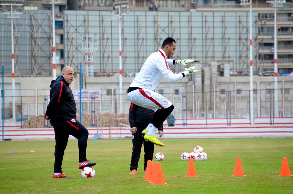 حرص السويسري كريستيان جروس المدير الفني للفريق الأول لكرة القدم بنادي الزمالك على إعطاء تعليمات خاصة للصاعد محمد أحمد "كماتشو" مدافع الفريق على هامش التدريبات الجماعية اليوم .