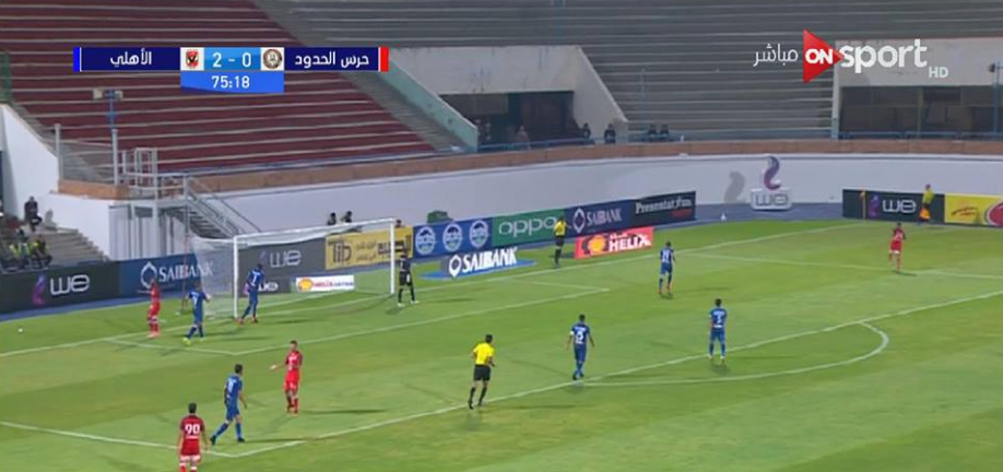 وكاد فريق حرس الحدود ان يعلن عن الهدف الاول في مرمى الاهلي بعد كرة عرضية خطيرة ولكن اخطأ امام عاشور استغلالها بالدقيقة 54.